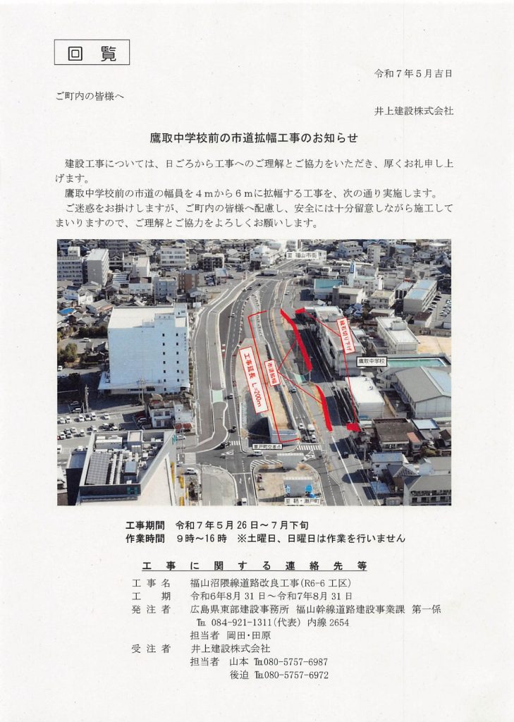 鷹取中学校前の市道拡張工事のお知らせ