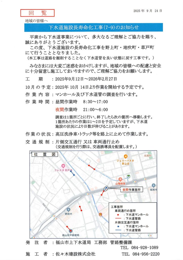 下水道施設長寿命化工事のお知らせ