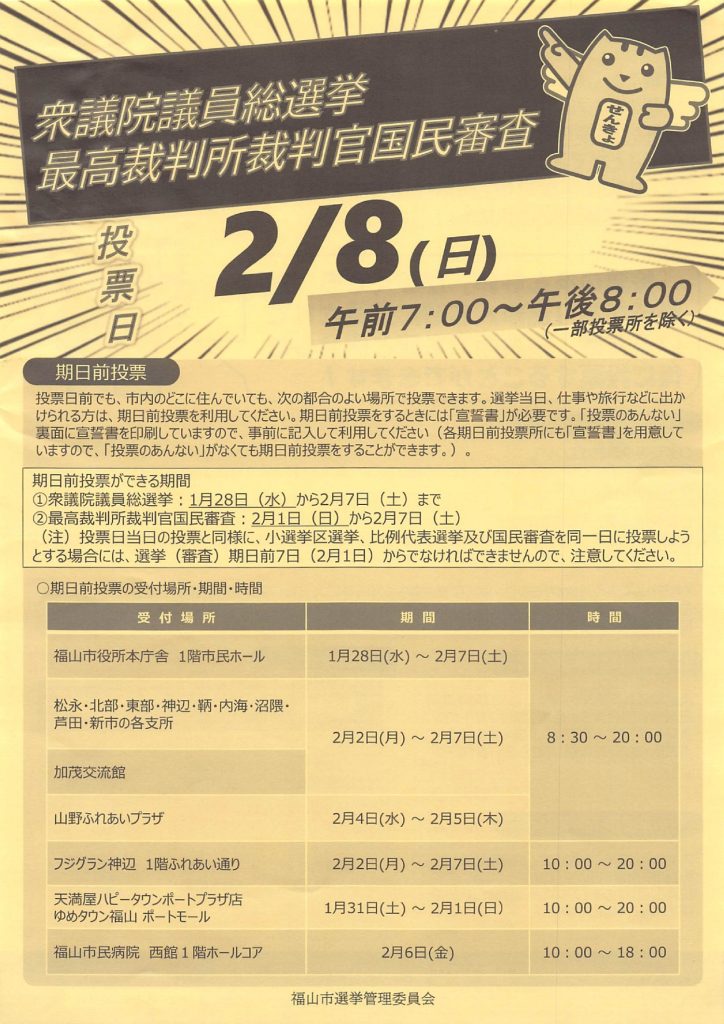 衆議院議員選挙 投票日 2月8日