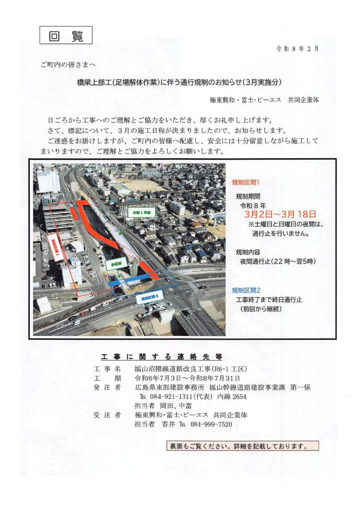 芦田川大橋東側道路交通規制(3月2日~18日)